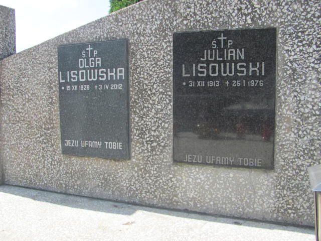 Grób i płyta nagrobna Juliana Lisowskiego w Dębicy; źródło: https://debicakomunalny.grobonet.com/