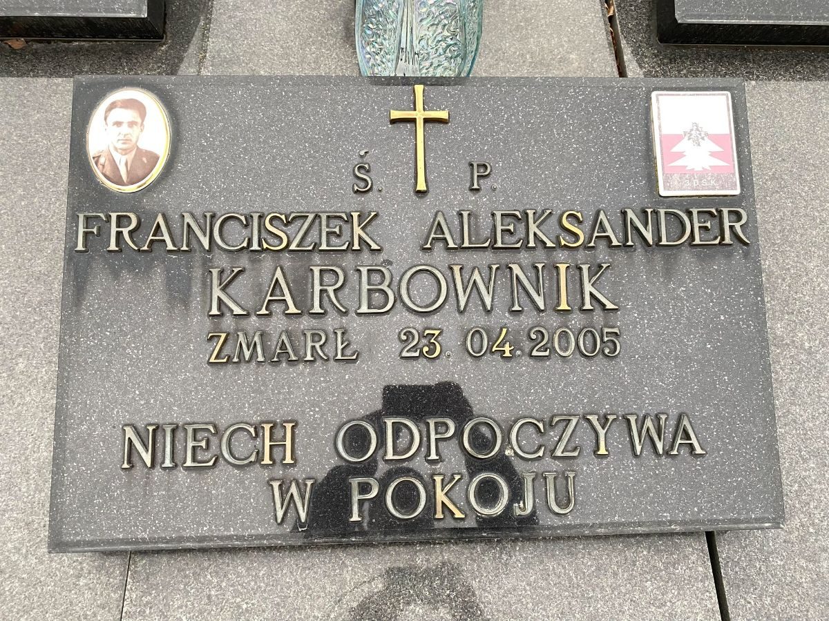 Płyta nagrobna Franciszka Karbownika w Żarnowie; źródło: archiwum Pawła Telusa