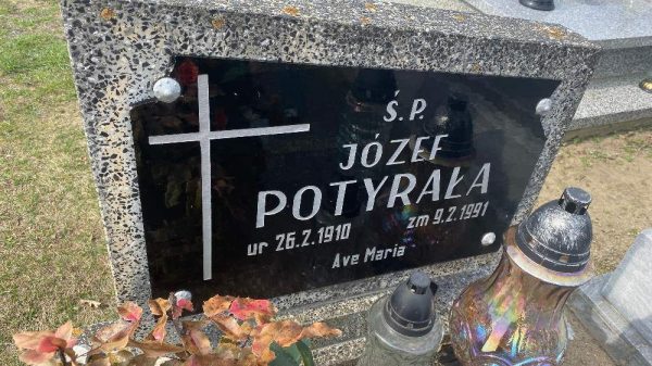 Grób i płyta nagrobna Józefa Potyrały w Parzynowie; źródło: https://www.ecmentarze.pl/ |