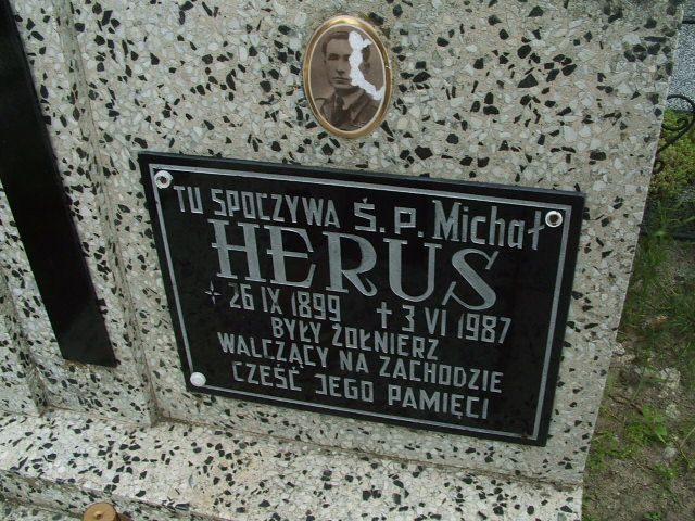 Grób i płyta nagrobna Michała Herus w Lubsku; źródło: https://lubsko.grobonet.com/ |