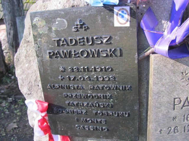 Grób i płyta nagrobna Tadeusza Pawłowskiego; źródło: https://zakopane-parafia.grobonet.com/ |