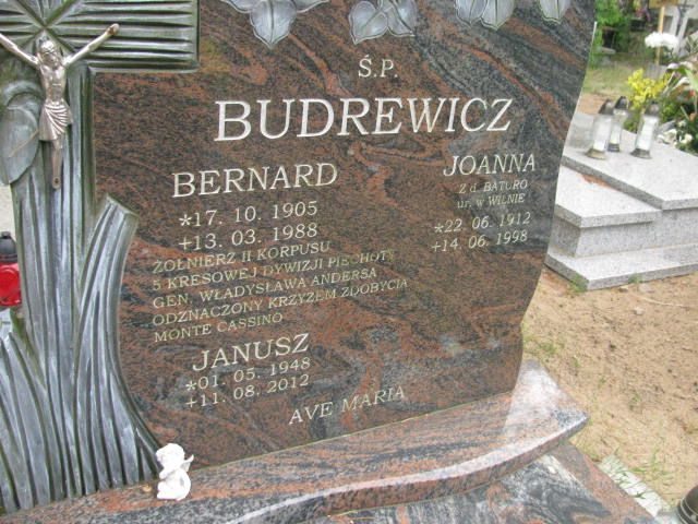 Grób i płyta nagrobna Bernarda Budrewicza w Bydgoszczy; źródło: https://cmentarze.bydgoszcz.pl/ |